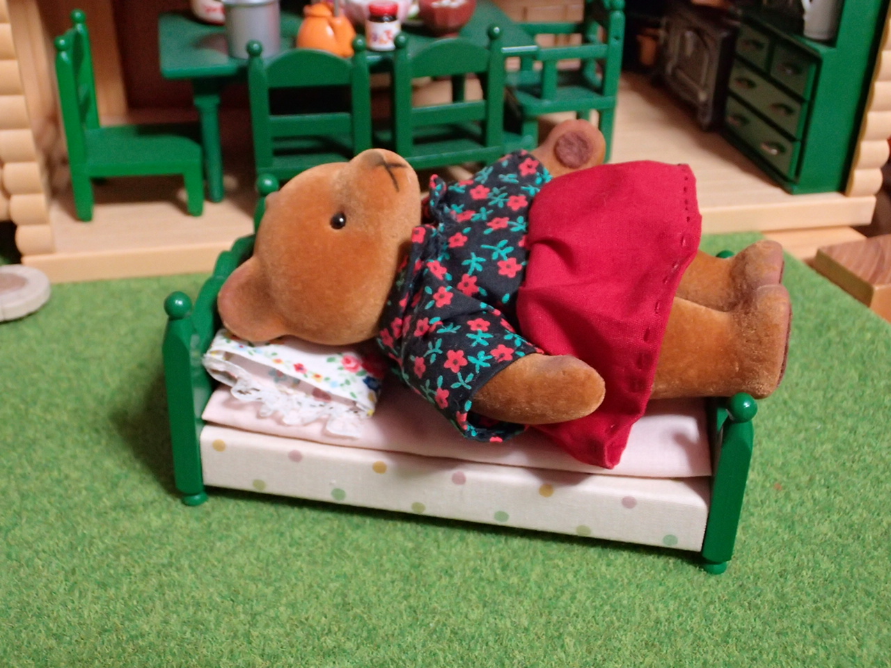 子供心になんでかなぁ?と思いながらも、まぁくまの女の子ならベッドに寝られるので